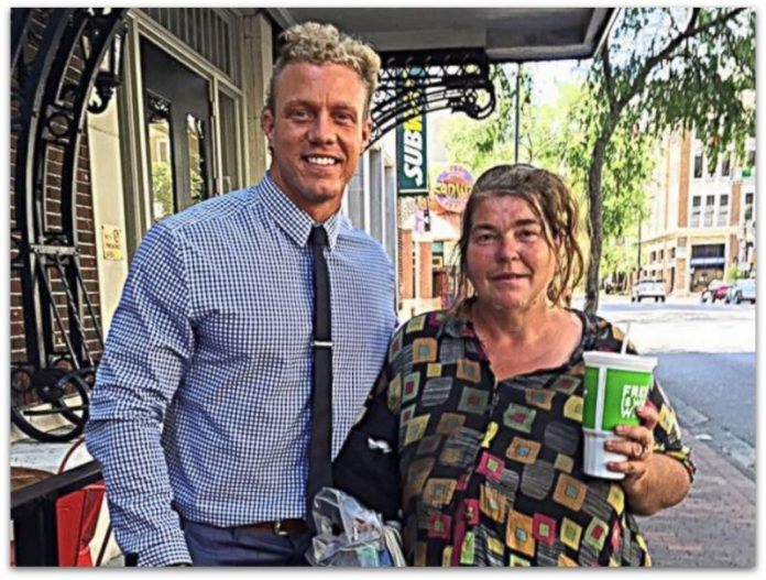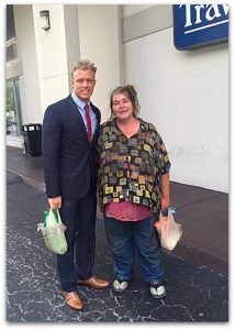Последните седмици секој вторник Amy Joe и јас јадеме во центарот на Орландо. Недела дена, секој ден ја гледав како стои на аголот и никогаш не барала пари. Едноставно би кажала: “Добро утро, и, се надевам, дека ќе ви биде добар денот”, и ќе се насмевнеше.