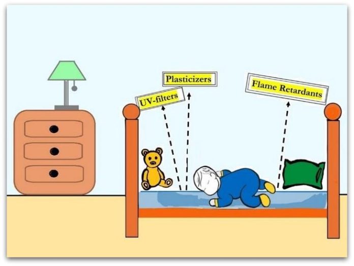 Иако спиењето игра клучна улога во развојот на детето, неодамнешното истражување сугерира дека исто така може да ги изложи децата на токсични хемикалии што се испуштаат од нивните душеци. Две рецензирани студии од Универзитетот во Торонто откриваат дека многу детски душеци испуштаат штетни материи кои претставуваат сериозни здравствени ризици за децата кои спијат на нив.