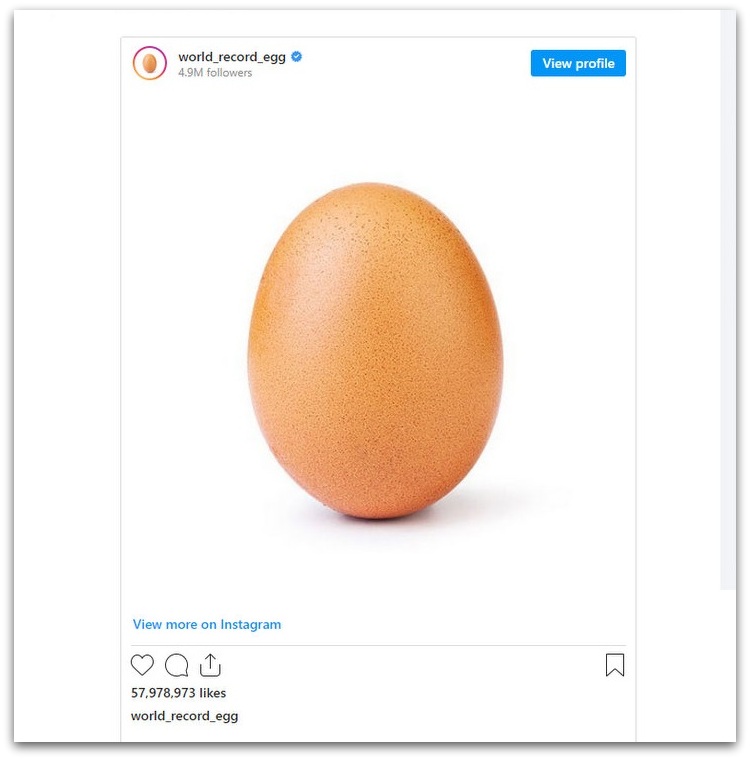 Она што е интересно е објавата која досега го држеше рекордот за најголем број лајкови на Instagram и чиј рекорд го собори Меси. Тоа е фотографија на обично јајце. Како што потсетуваат Би-Би-Си, оваа објава била дадена како своевиден протест против познатите личности кои објавуваат на Instagram, а кога била објавена целта била да ја урне најпопуларната објава дотогаш, фотографијата на Кајли Џенер, која објавила на Instagram дека чека дете и на тој начин собрала 18 милиони лајкови.