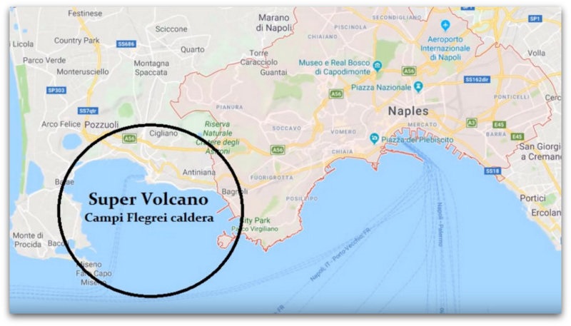 Phlegraean Fields (Флегриски полиња) е името на овој супер вулкан кој се наоѓа под Неаполскиот залив. Последната ерупција која се случила во 1538 година траела 8 дена и била толку моќна што го создала Monte Nuovo, поточно, нов рид висок 400 метри.
