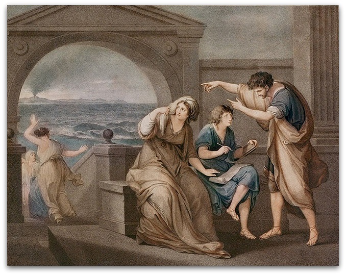Младиот Плиниј забележува како еруптира Везув. Обоени бакарни плочи од Томас Бурк