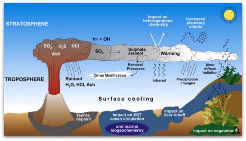 Веднаш потоа би се спуштила густа магла која така би можела да остане со месеци, а воздухот би имал силен мирис на сулфур. Целата таа вулканска пепел во комбинација со дожд би ги покрила земјоделските култури и тие не би биле за јадење.