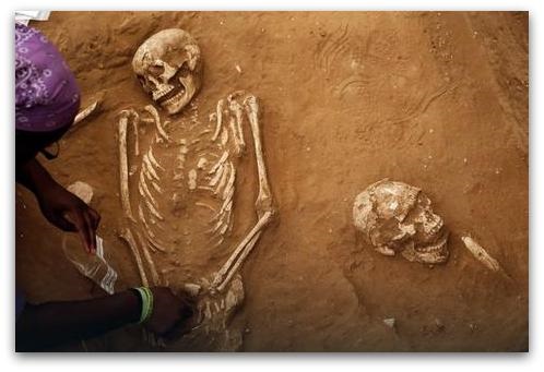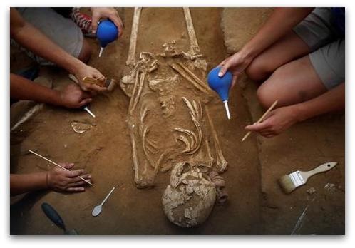 Археолозите ги отстраниле слоеви на почвата со кршливи коски целие остаоти од Филистејци, биле оставени недопрени, бидејќи тие биле закопани пред три милениуми.