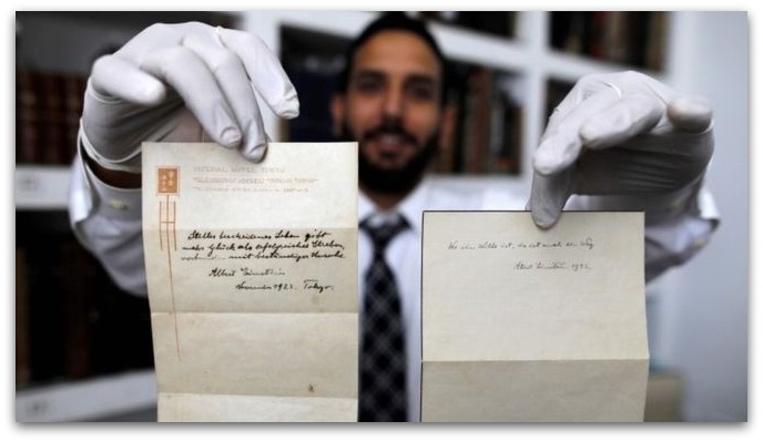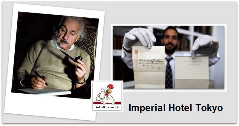 Но, тој не сакал да го остави со празни раце, па на германски му подарил две белешки. „Можеби, ако имате среќа, овие белешки ќе вредат многу повеќе од една напојница“, рекол Ајнштајн. На другата белешка, напишана на лист хартија со логото на Империал хотел, пишувало: