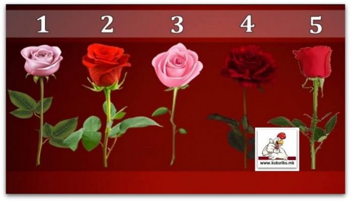 Пред вас има пет рози, а вие само треба да ја разгледате сликата и да изберете една од нив. Направете го тоа по случаен избор или едноставно одберете роза која е најубава за вас.
