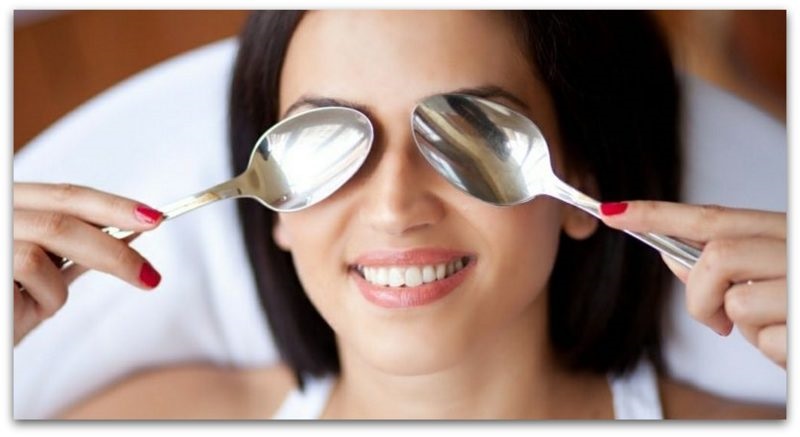 Потоа допрете ги со вдлабнатиот дел и покријте ги очните капаци. Останете така додека не почувствувате дека лажиците веќе се топли. Овој трик ќе го намали отокот и ќе ја олабави значително кожата.