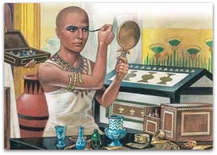 Египќанките, но и Египќаните, користеле козметика уште во времето на фараоните. Козметичките средства и шминка не ги употребувале само за разубавување, туку тие биле задолжителен дел и во ритуалите и во обредите. А, особено внимание посветувале на убавината и шминкањето на очите. Освен тоа, шминката имала и заштитна улога – ја штитела кожата и очите од пустинската прашина и сонце, од правот и можните инфекции.