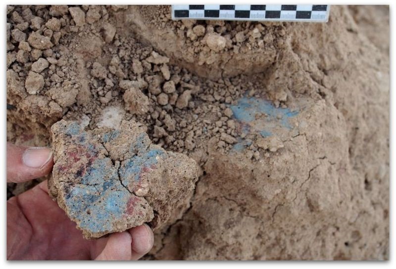 Ѕидовите на палатата се високи до два метри, а археолозите откриле на нив мурали во црвена и сина боја.