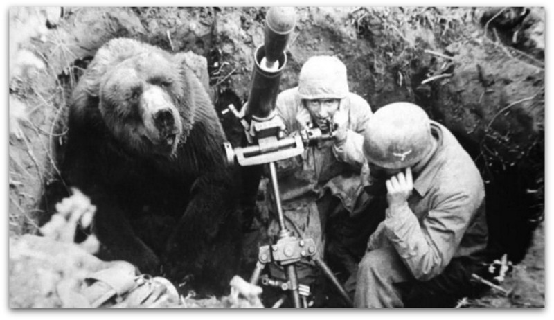 Бидејќи тој секогаш ги копирал постапките на своите војници, мечката започнала да носи кутии со муниција кон топовите, а звуците од експлозијата не го допирале.