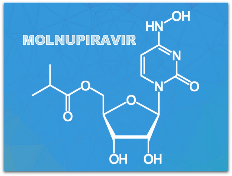 Molnupiravir работи со помош на ензим што коронавирусот го користи за копирање на генетскиот код и репродукција. Molnupiravir (MK4482, EIDD-2801) е про-лек на синтетичкиот нуклеозиден дериват N4-хидроксицитидин. Само активниот метаболит може да се вгради во вирусната RNK за да генерира грешка при копирање и да ги поремети полимеразите, а со тоа и нејзината репликација.