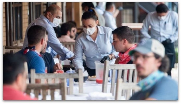 Откриле дека „оброците играат централна улога во овие инфекции“ затоа што луѓето седат блиску еден до друг без маски.
