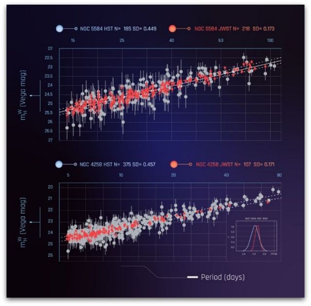 Спротивно на тоа, JWST, моќен инфрацрвен телескоп, ги надмина овие ограничувања. Riess и неговиот тим користеле JWST за набљудување на 320 променливи на Cepheid, значително намалувајќи ја бучавата во податоците во споредба со набљудувањата на Hubble. Неверојатно, определувањата на растојанието од двата телескопа се совпаѓаат, што сугерира дека податоците од Hubble не можат да се отфрлат и дека Hubble тензијата сè уште постои.