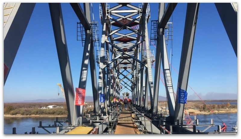 На првиот железнички мост што ги поврзува Русија и Кина штотуку беа споени шините од двата правци.