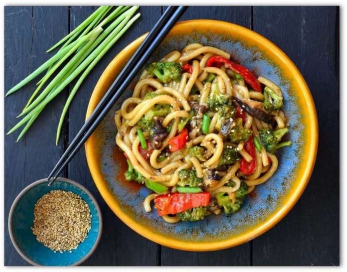 Измешајте ги во сад соја сосот, шеќерот, сусамовото масло, ѓумбирот и ќечапот и тргнете ги на страна.