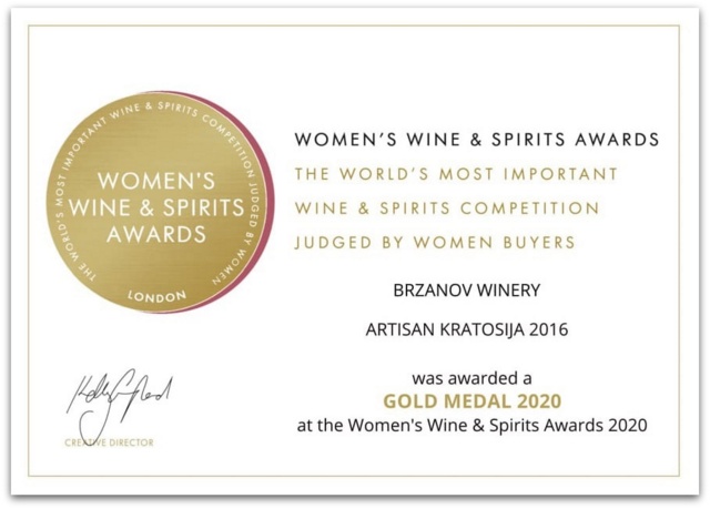 Виното Артизан Кратошија на Винарија Брзанов се закити со златна плакета на меѓународниот натпревар на вина и алкохолни пијалаци „Women`s Wine & spirit Awards“ во Лондон.