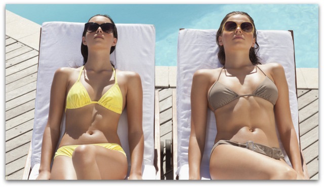Многу жени сакаат да се сончаат покрај базен по пливањето, чекајќи костимот за капење сам да се исуши.
